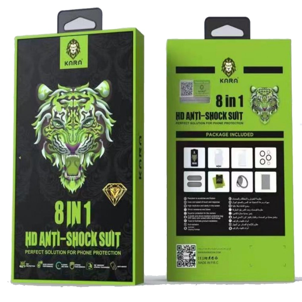بكج ايفون 11بروماكس كارا 8 * 1 هو مجموعة شاملة من الحماية للهاتف، ويتكون من 8 قطع أساسية: