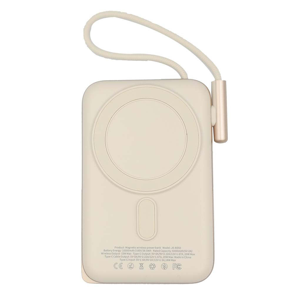 - بطارية داخلية بسعة 10000 مللي أمبير، كافية لشحن معظم الهواتف الذكية مرتين على الأقل حسب سعة البطارية.