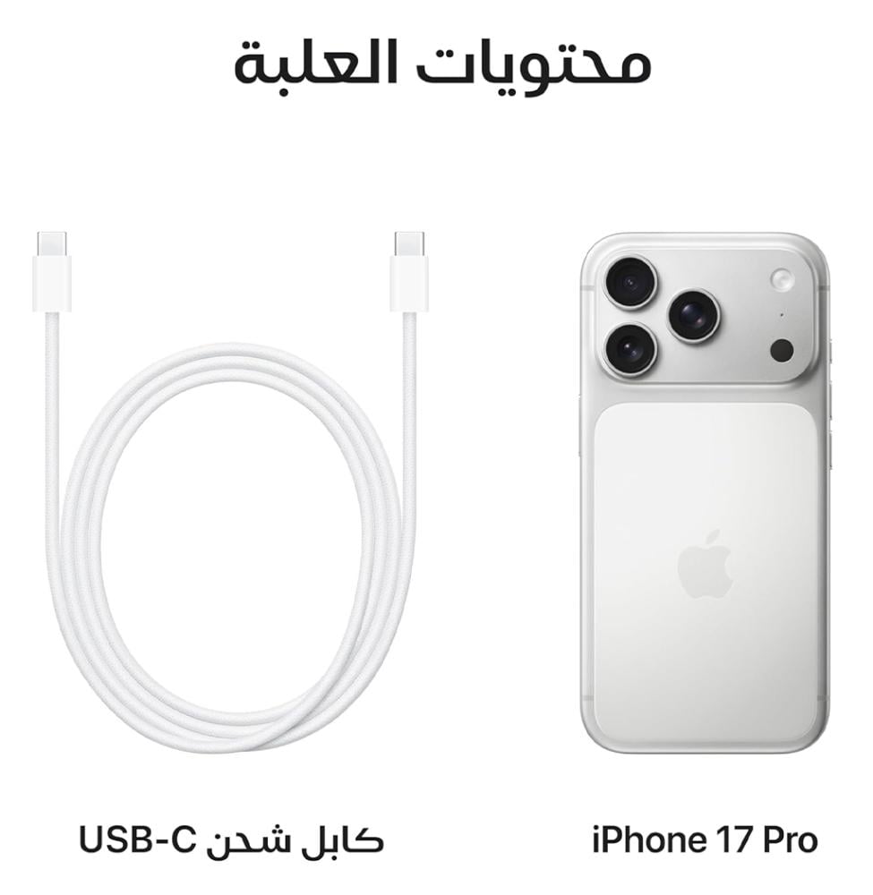 هاتف Apple iPhone 17 Pro Max – دبوس معدني – كتيب التعليمات يوضح كيفية إستخدام الهاتف – سلك USB من نوع Type C .