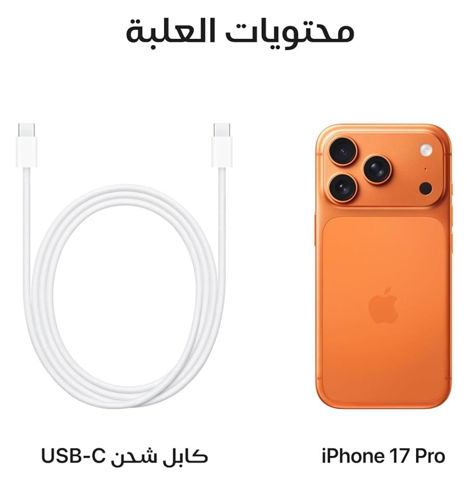 وصف ايفون 17 برو اللون برتقالي 512 جيجا نسخة الشرق الأوسط esim