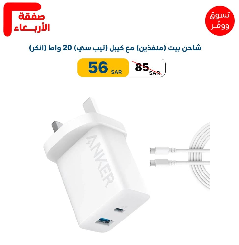 شاحن بيت (منفذين) مع كيبل (تيب سي) 20 واط (انكر)