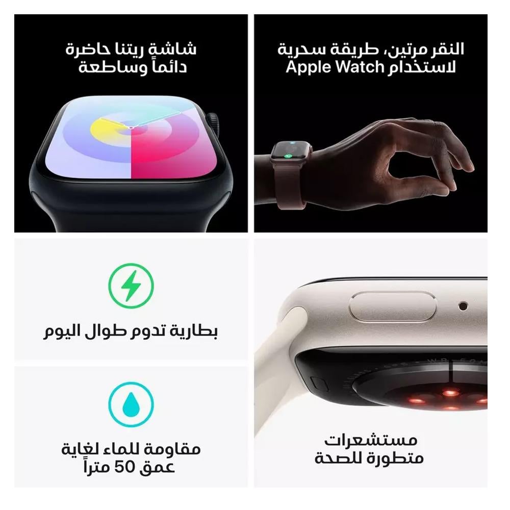 • ساعة ابل الجيل التاسع 45مم مقاومة للماء بعمق يصل حتى 50 متر تحت الماء