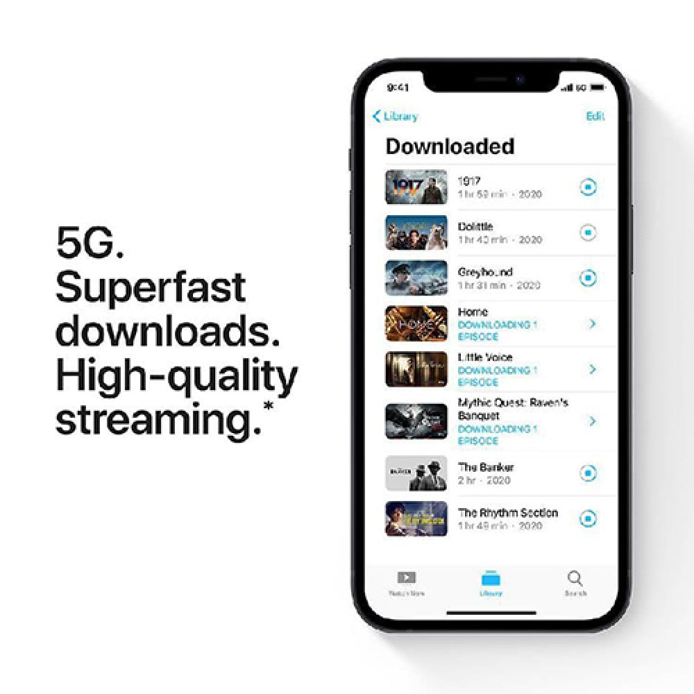 - يدعم ايفون 12 ابيض 128 جيجا شبكات الاتصال الجيل الخامس 5G لتصفح أسرع وتحميل أسهل
