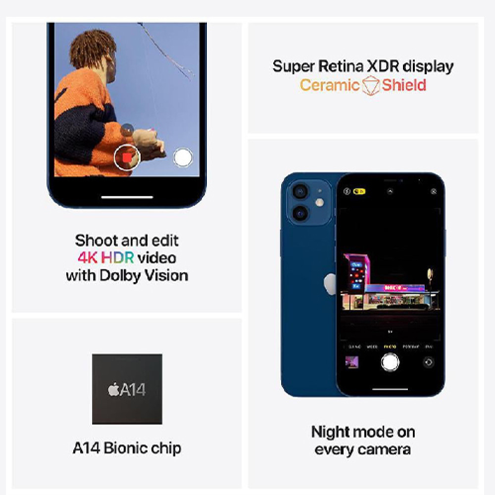 - يقدم ايفون 12 ابيض 128 جيجا نظام كاميرا خلفية مزدوجة بدقة 12 ميجابكسل لكل منها مع تأثيرات مذهلة مثل نمط البورتريه والإضاءة والدمج العميق وHDR 3 الذكية