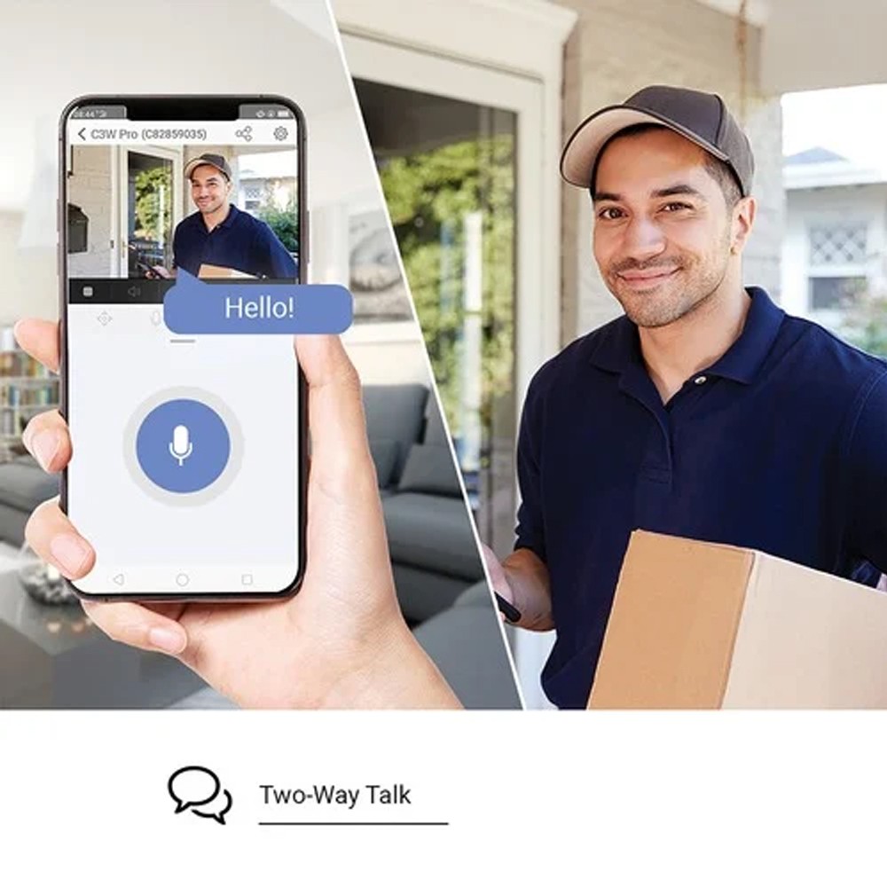 - لا تدعم كل كاميرات المراقبة الخارجية الصوت ثنائي الاتجاه. وتأتي كاميرا C3Wمزودة بميكروفون مضمن وسماعة ذات جودة HiFi لتمكين إجراء محادثة محسّنة ثنائية الاتجاه.
