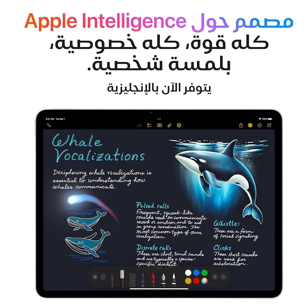 - Apple Intelligence: الجهاز مدعوم بنظام الذكاء الاصطناعي من Apple، مع ميزات مثل: