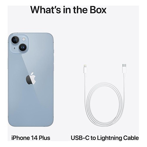 الملحقات الأساسية لعلبة جوال أيفون 14 بلس (أزرق) 512 جيجا (شريحتين):