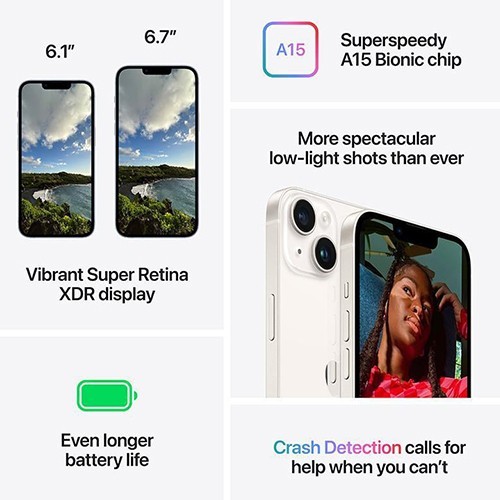 - معالج A15 Bionic سداسي النواة بتقنية 5nm يوفر أداء فائق السرعة وكفاءة في استهلاك الطاقة ودعم للألعاب والواقع المعزز.