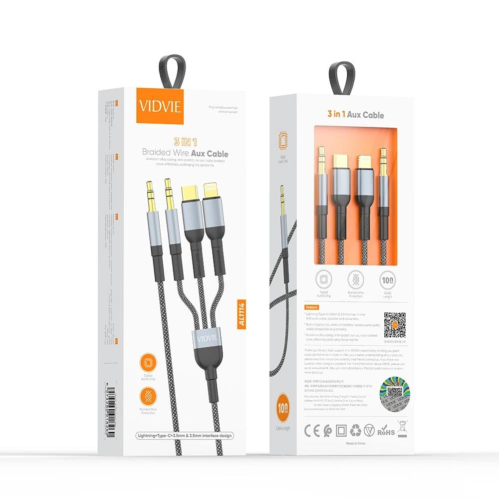 كيبل صوت (3 في 1) 1 متر AL1114 (فدفي - VIDVIE) - ضمان سنة