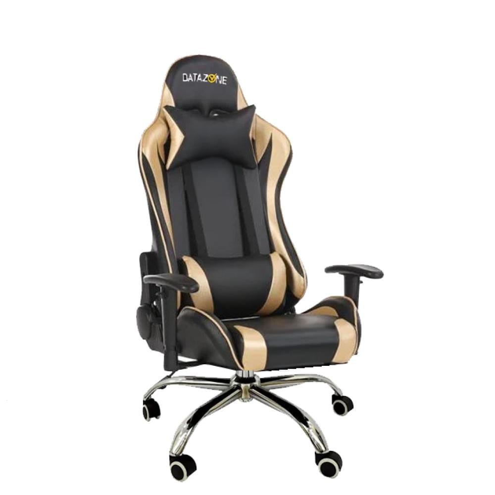 كرسي ألعاب أسود ذهبي + وسادة رقبة + مسند ظهر (داتا زون)