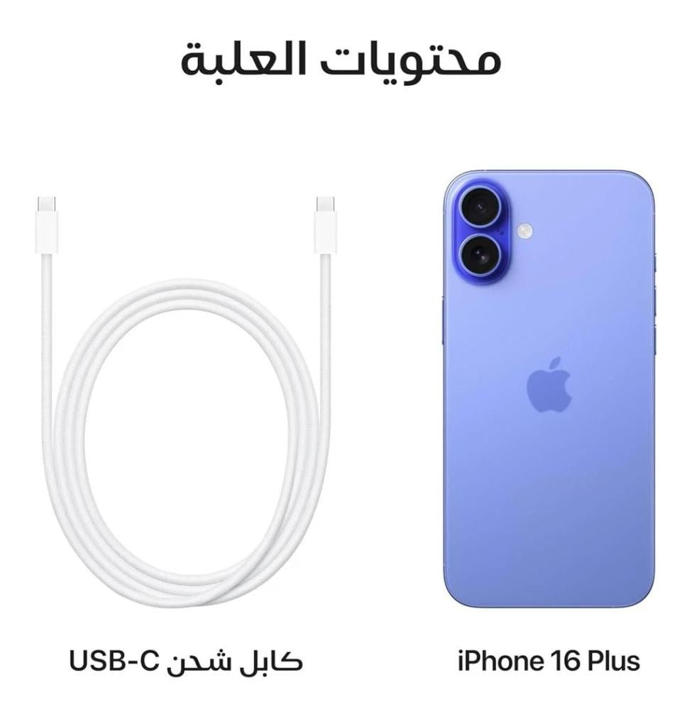 هاتف IPhone 16 Plus – دبوس معدني – كتيب التعليمات يوضح كيفية إستخدام الهاتف – سلك USB من نوع Type C .