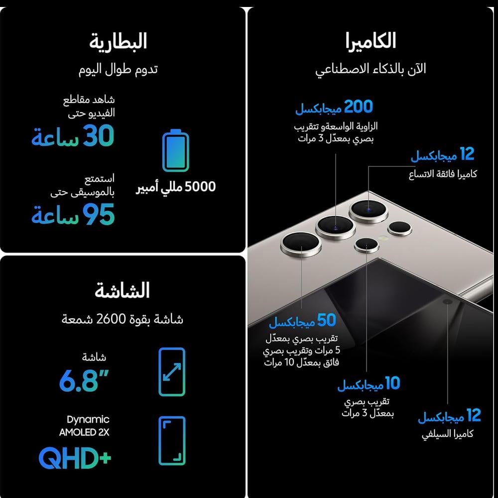 مميزات جوال سامسونج S24 الترا (تيتانيوم بنفسجي) 256 جيجا: