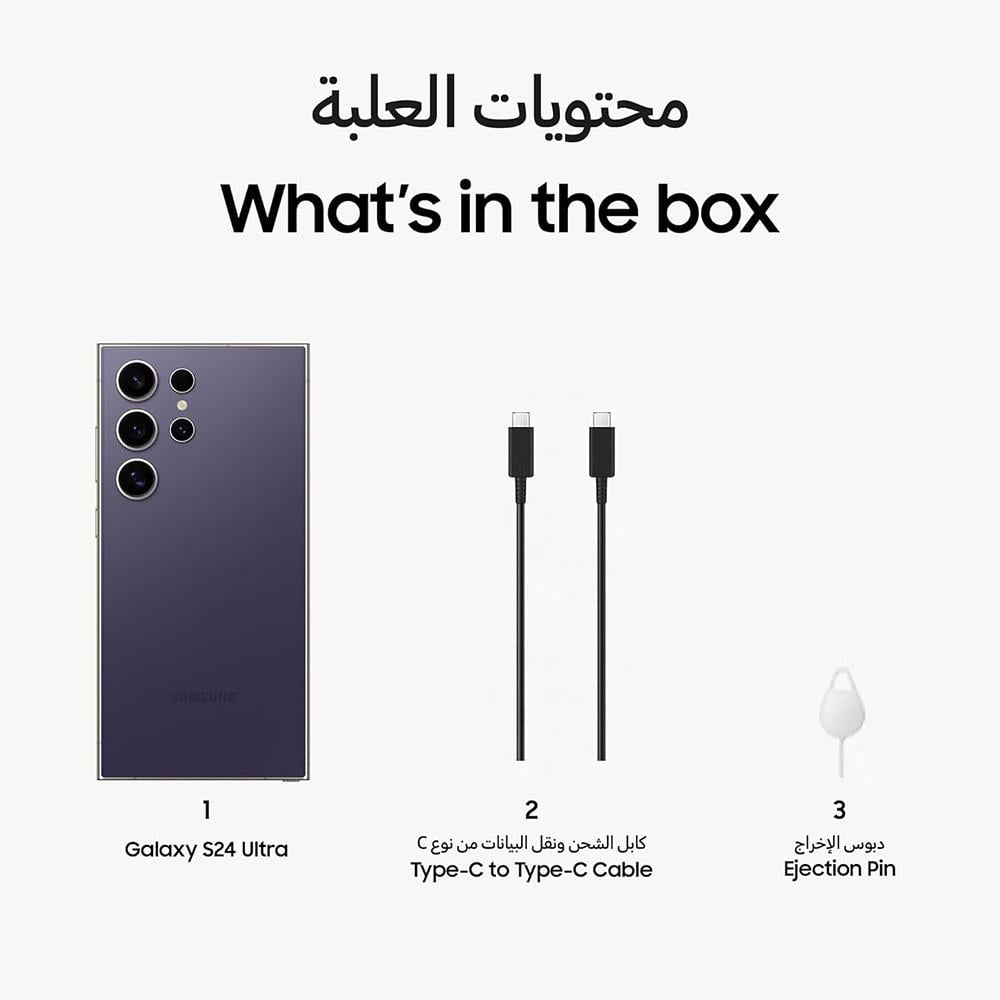 هاتف سامسونج اس 24 الترا تيتانيوم بنفسجي 256 جيجا - كيبل لشحن الجهاز - ودليل سريع للبدء - دبوس الاخراج