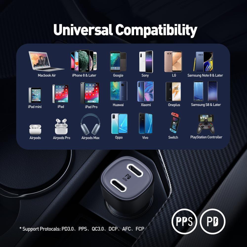 قوة شحن 45 واط: تتيح لك شحن الأجهزة بسرعة أكبر مقارنة بالشواحن التقليدية، ما يقلل وقت الانتظار.