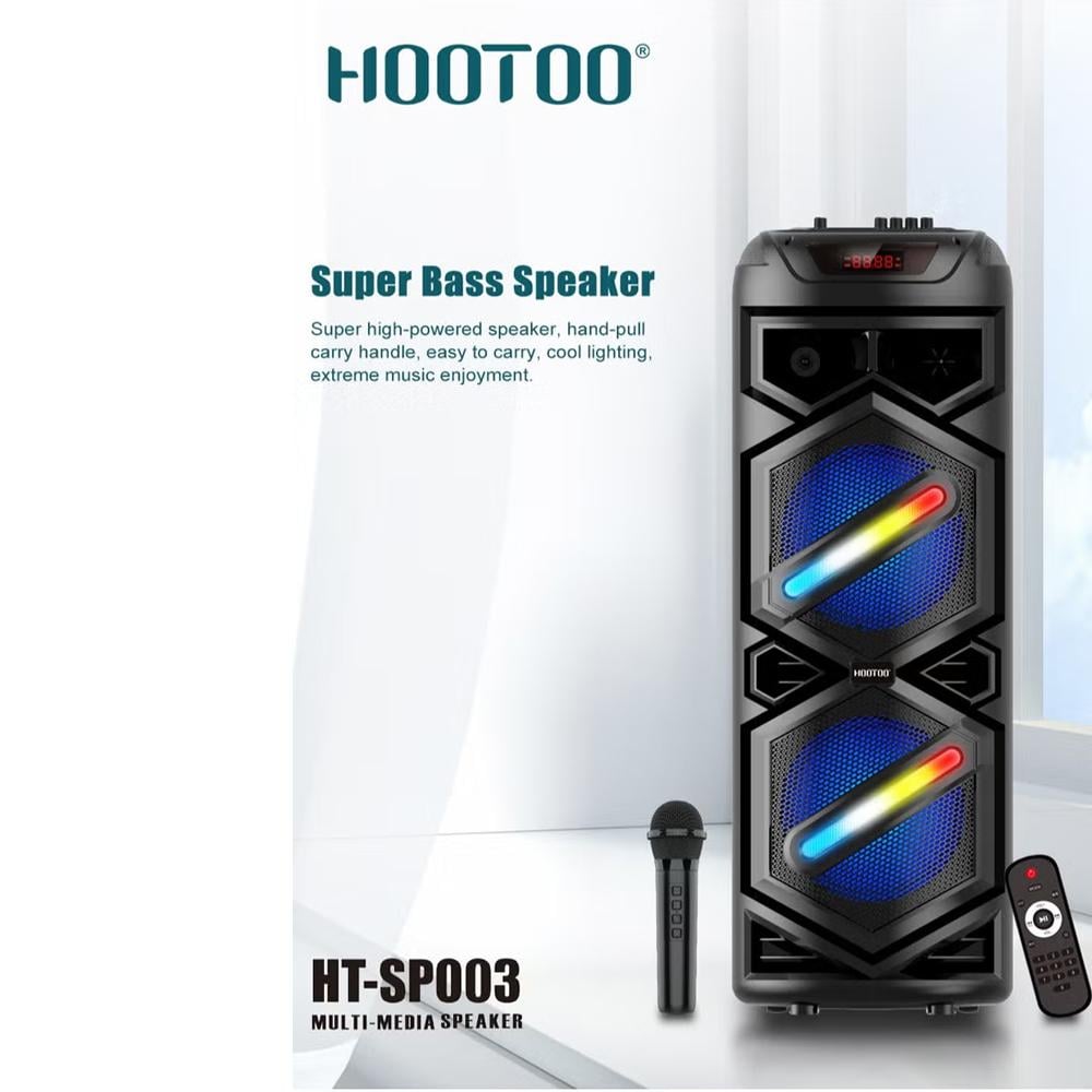 سماعة ومكبر الصوت اللاسلكي HOOTOO HT-SP003 توفر تجربة صوتية مميزة ومجموعة من الميزات المتقدمة. تتميز بتصميم متين مناسب للاستخدام الخارجي، مع صوت جهير قوي وجودة عالية.