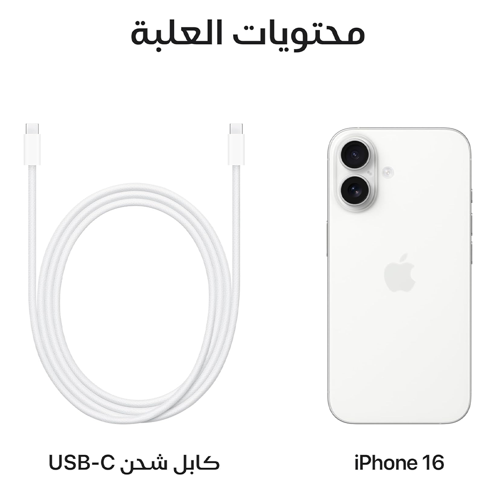 جوال أيفون 16 (أبيض) 256 جيجا 5G (نسخة عالمية) - ضمان سنتين