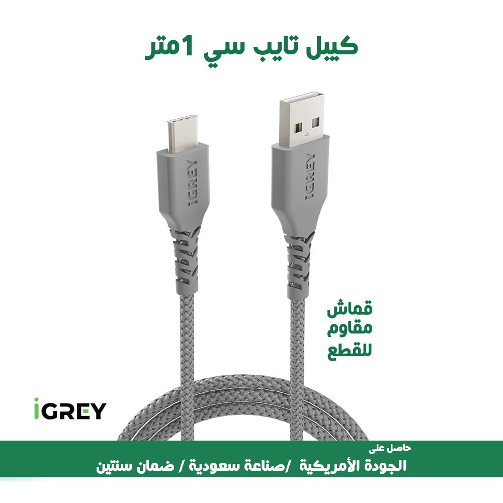 كيبل (تايب سي) 1 متر (أي جري - IGREY) - ضمان سنتين