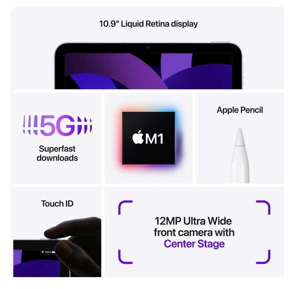 - أيباد إير 5 (بنفسجي) 256 جيجا 8 رام 10.9 إنش (شريحة) - ضمان سنتين