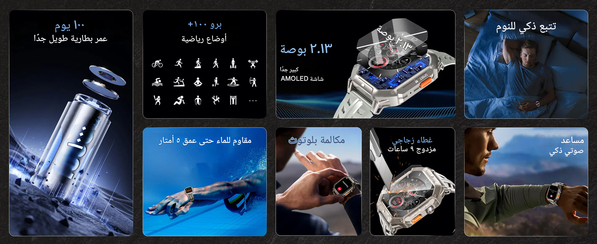 Octel Watch (Black) 2.13 Inch BT80 - 2 Years Warranty