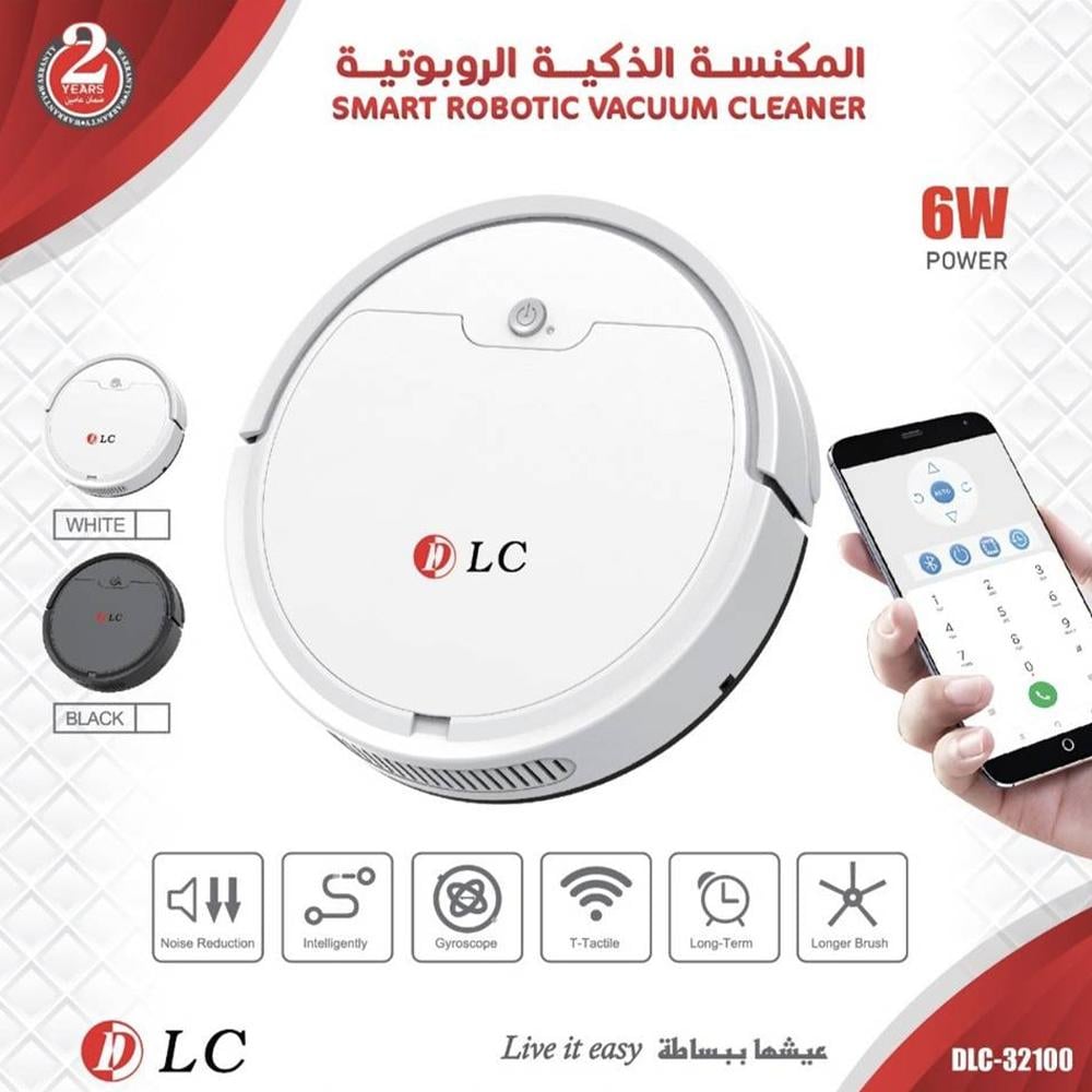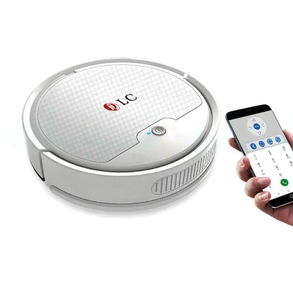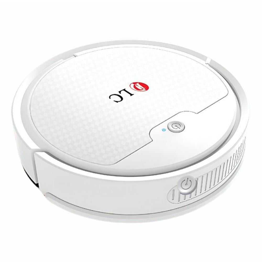 Smart robot vacuum cleaner, rechargeable, cleans all surfaces such as marble, ceramic, wooden floors, and carpets. Dual brushes.