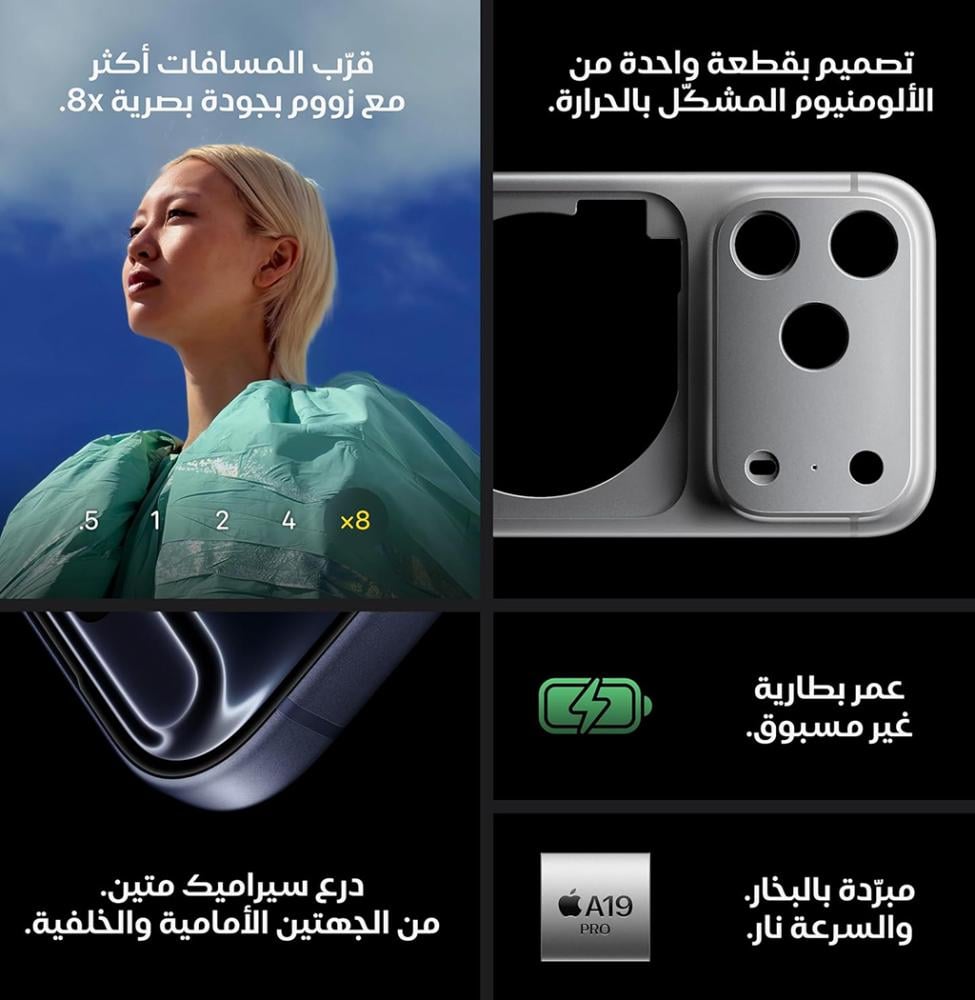 Screen: The screen comes in the form of a notch and is of the LTPO Super Retina XDR OLED type with an area of 6.9 inches with a resolution of 1320 x 2868 pixels with a pixel density rate of 460 pixels per inch and supports the Always On Display feature in addition to a variable refresh rate of 120Hz with support for HDR10+ and Dolby Vision with a protective layer of Ceramic Shield 2 and a brightness of up to 3000 nits.