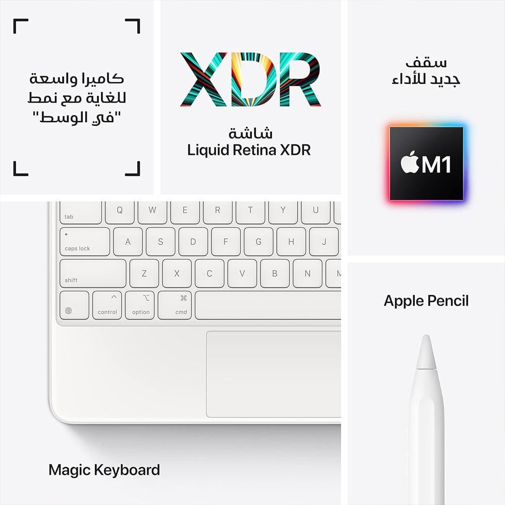 الشاشة : شاشة Liquid Retina XDR مقاس 12.9 إنش، بدقة 2732 × 2048 بكسل