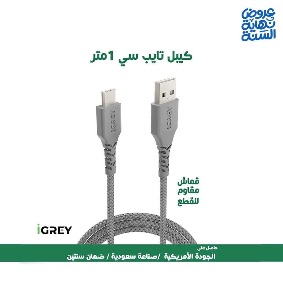كيبل (تايب سي) 1 متر (أي جري - IGREY) - ضمان سنتين