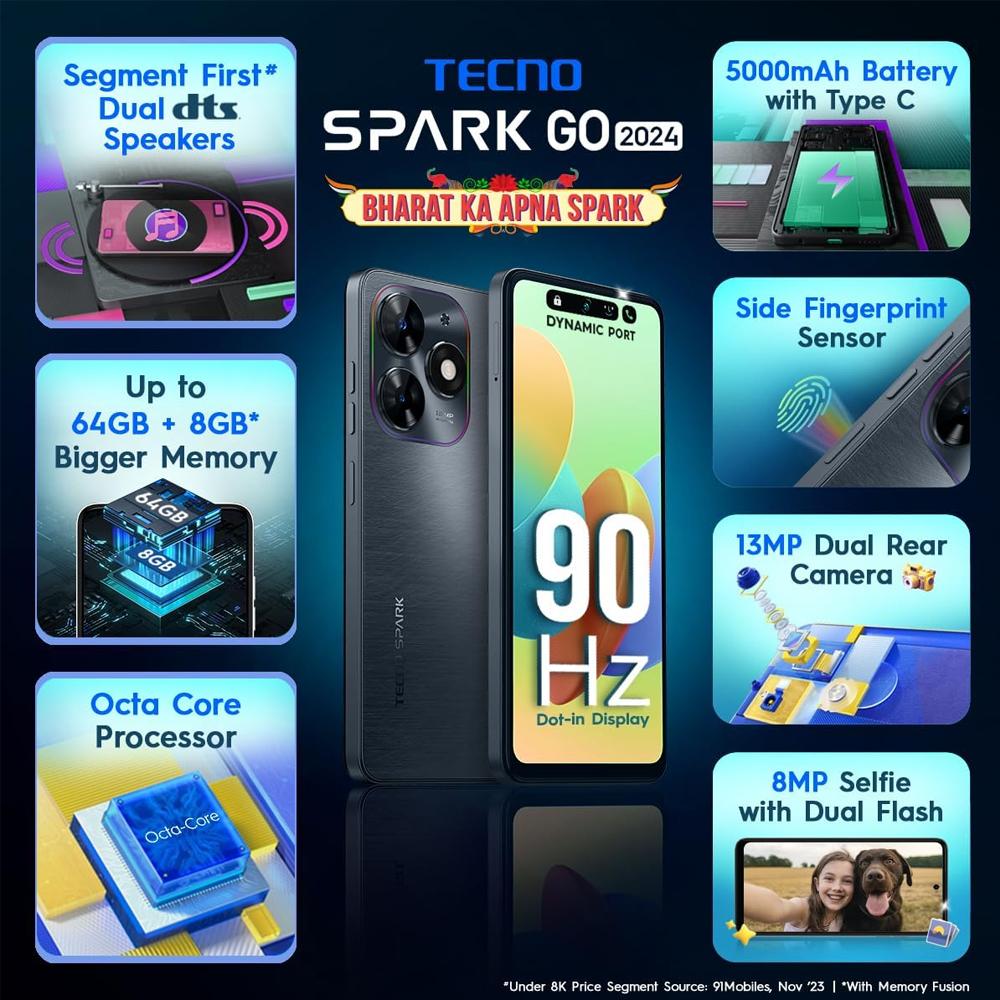 مميزات جوال تكنو سبارك جو 2024 (أسود) 64 جيجا 6 رام: